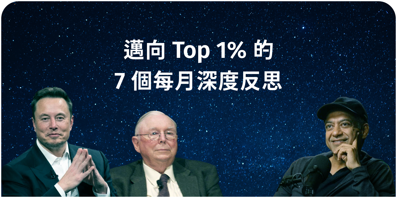 我們整理了查理蒙格、賈伯斯、馬斯克、納瓦爾…… 和數十位把人生自我挑戰當成每日目標在追求的人,對於「成長」這件事的核心態度,精煉成 7 個關鍵提問!