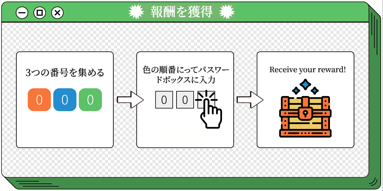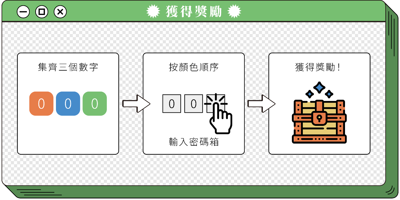 Stp.3:成功解鎖房內密碼箱,獲得獎勵!