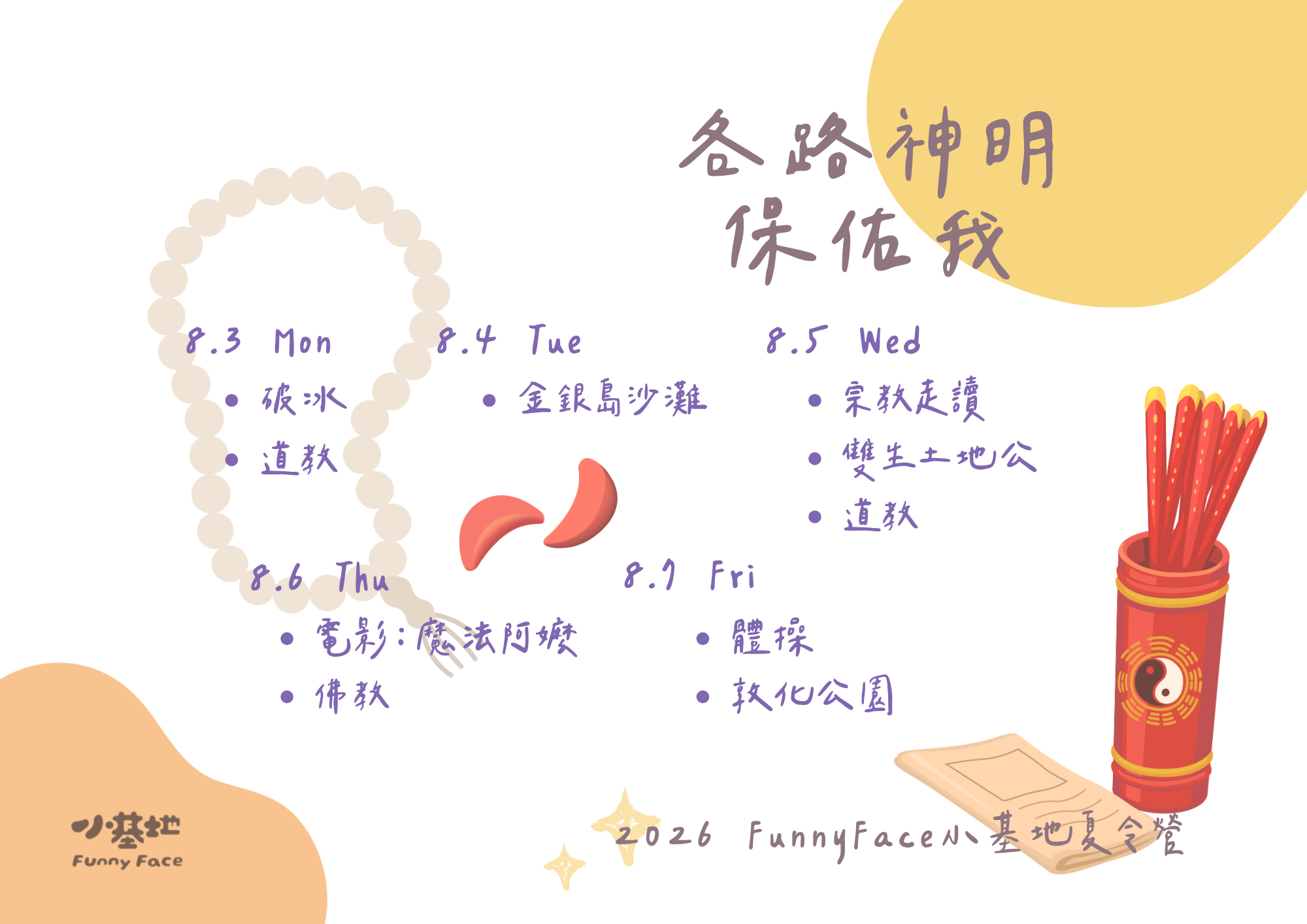 🔸 活動期間以表定行程為主,但會依天氣與孩子狀況彈性調整。FunnyFace 小基地保有最終行程調整與變更之權利。