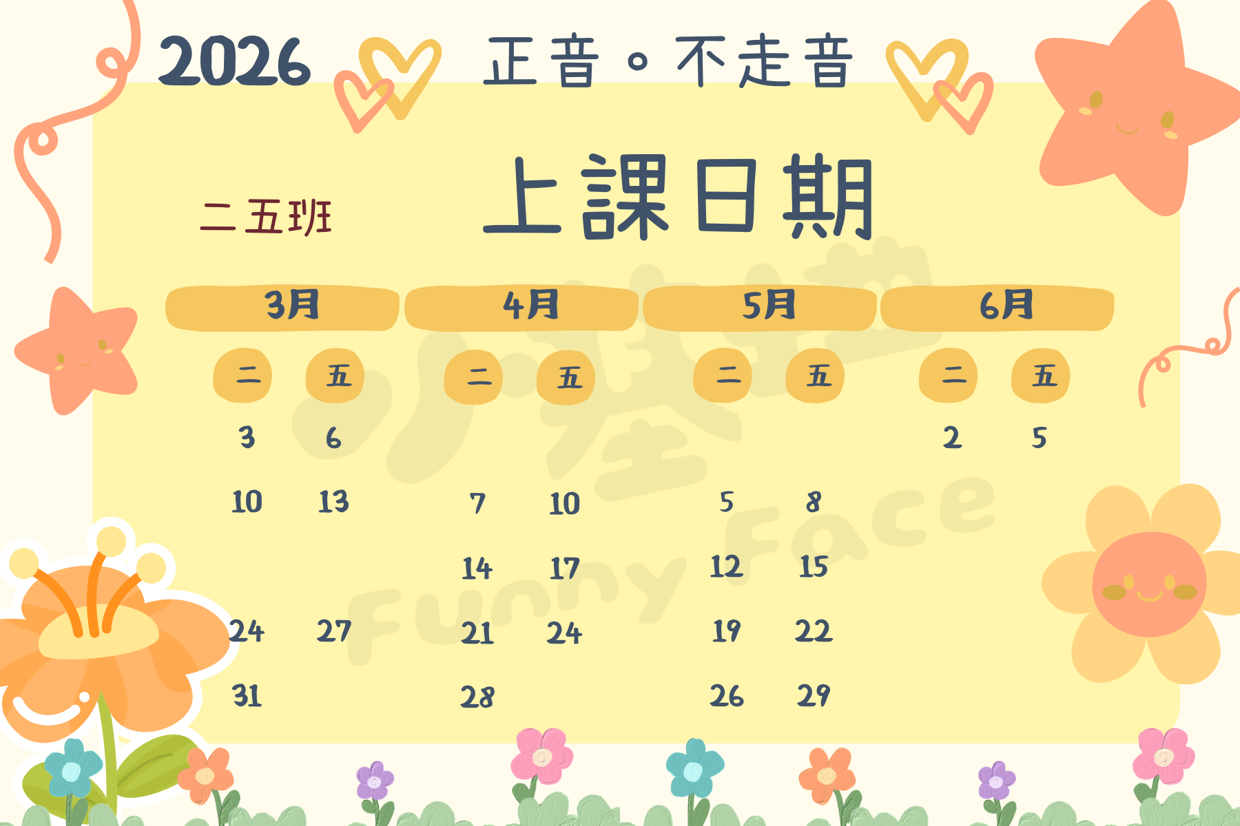 🔸時間:每週2堂,週二和週五16:30 ~ 17:30(各1小時)