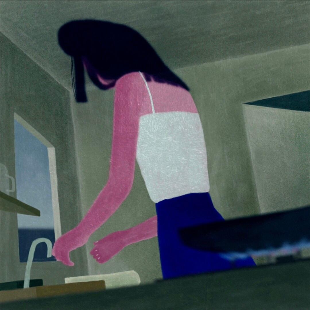 那名「女子」短暫來到她的城市,莫名的感覺如梅雨般折磨著她的身心,她於是沈入從手指傷口生長出的蘆葦之中。"