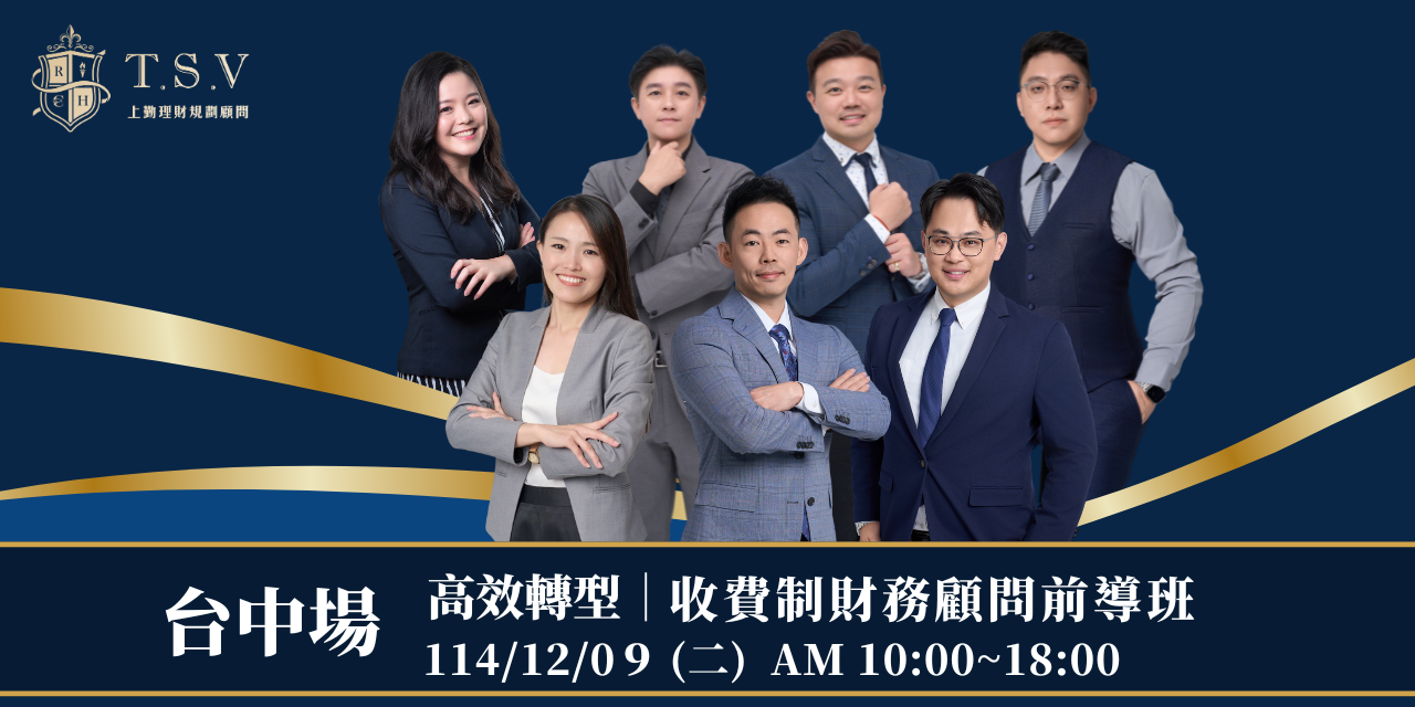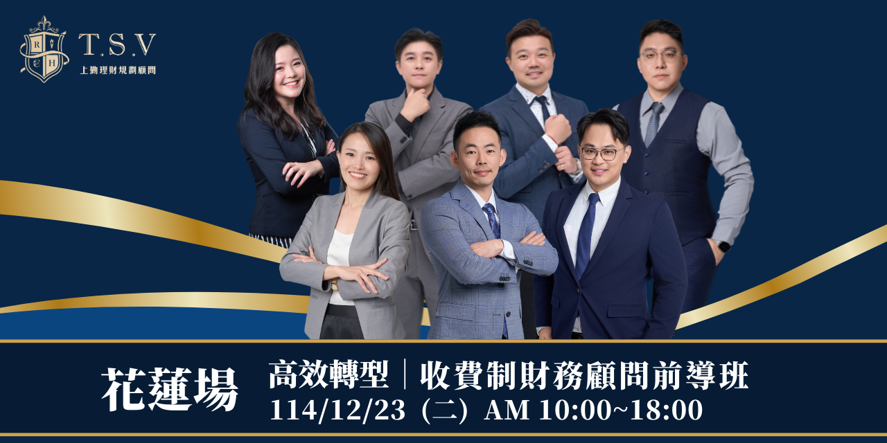 我們的目標不僅是解決問題,而且是實現客戶的理想和目標! TSV上勤理財規劃,超越一般的財務規劃,不倚賴理財商品的佣金,提供最客觀的分析,客戶的利益永遠為先,並持續提供最優質的服務。 我們的專業團隊遍及台灣各地,擁有各種專業背景,團隊出手,共同打造美好的財務未來,成就客戶與顧問的財富夢想,創造雙贏! 保險業/金融業夥伴想突破年收、擺脫商品佣金限制,轉型收費制財務顧問,從上勤理財開始!