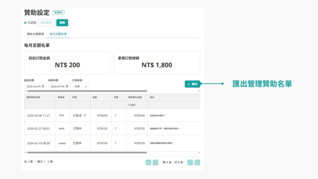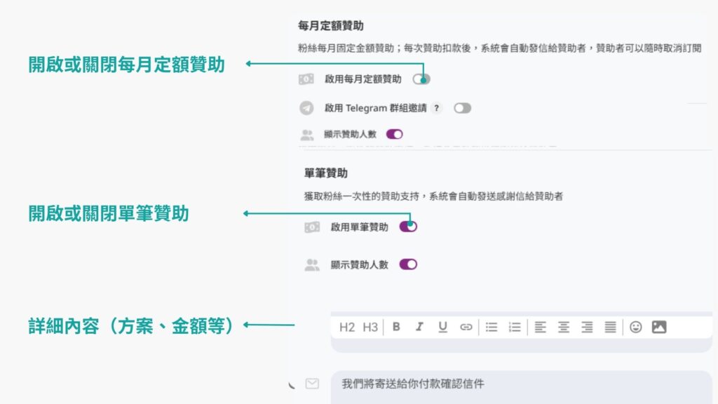 除了長期的純贊助外,若能寫下明確的目標或贊助用途,也能增加粉絲們的信任感,覺得這筆贊助充滿意義。