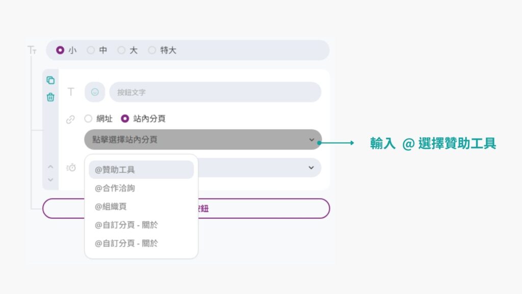 1.在 Portaly 任何可以貼連結的區塊網址欄中,輸入「@」,就會自動跳出可連結的贊助頁面