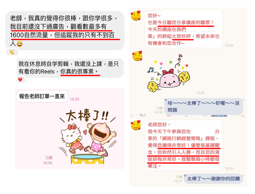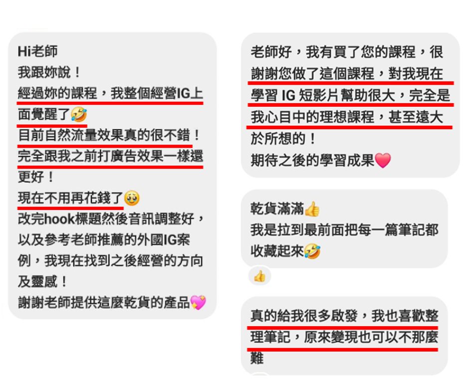 🔸 我分享數位行銷趨勢將近1000多場,接觸超過上千名聽眾。這些經驗讓我清楚掌握市場需求,並能快速傳遞有價值的資訊,我將教會你以最簡單、有效率方式經營IG,同時創建線上課程,變現成功.本課程具備以下特色: