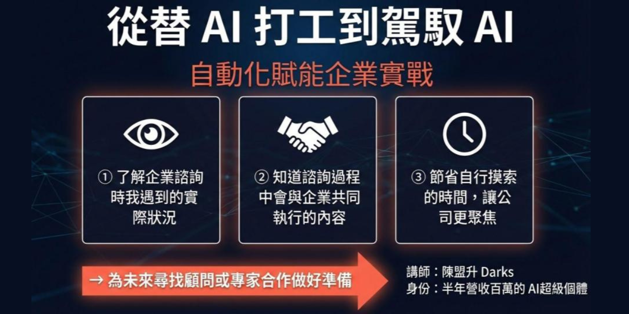 嗨,我是Darks, 正在第四次創業, 以一人公司為目標努力中。 我在n8n投入1000+小時的學習與實作, 堅持打造讓你開箱即用的n8n工具, 讓我們一起朝一人公司,朝超級個體努力。 很感謝這麼多人購買我的模板和組合包, 也因此知道原來還有很多對n8n感興趣, 卻不得其門而入的新手, 所以一直在製作教學影片、文章, 也一直在群裡回答新手問題, 希望大家能藉這個機會學會, 並能真正使用n8n提升自己的生產力。 讓我們一起努力成長,一起學習。 ✍️用接地氣的方式,陪你在AI時代,找到屬於自己的生存之道,成為更美好的你。