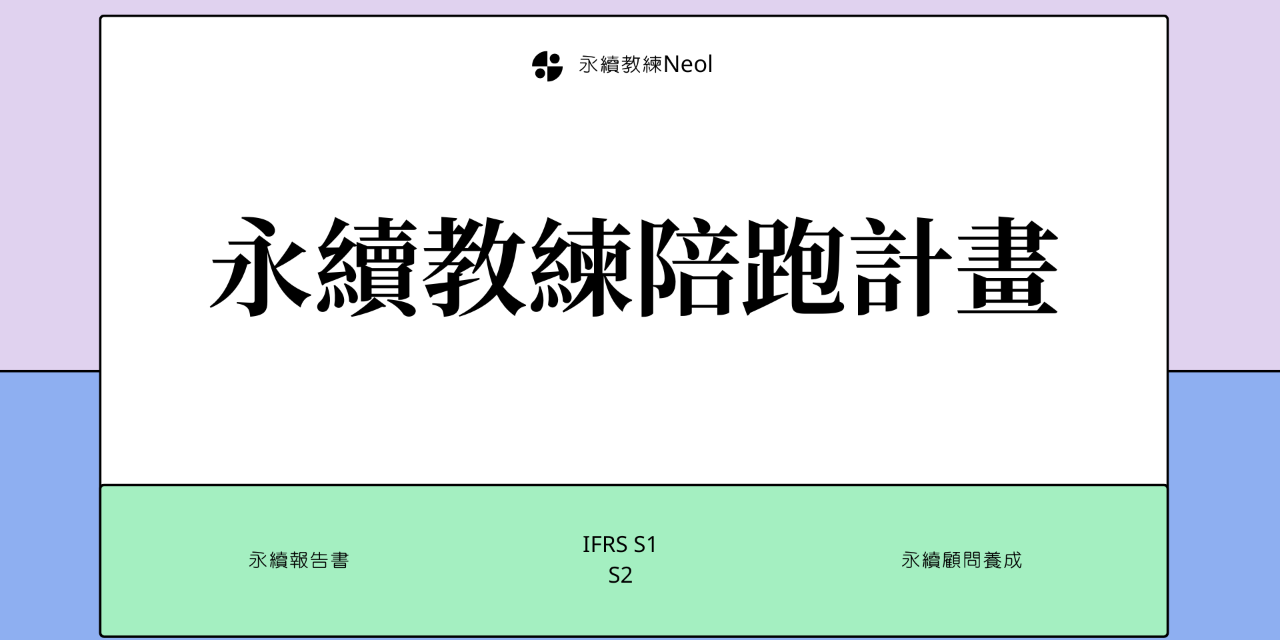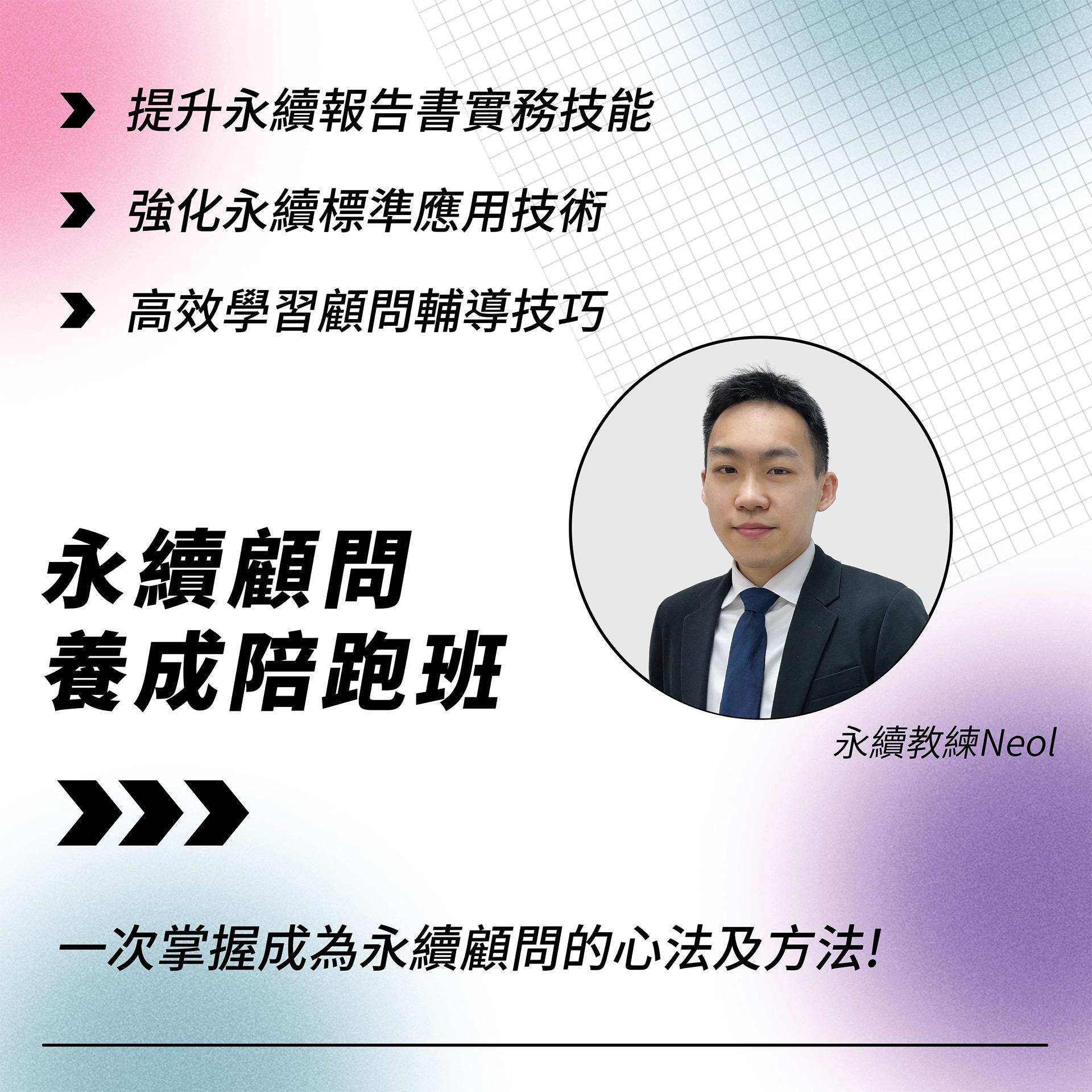 永續教練Neol汲取自管顧公司,及上市公司任職永續職務經驗,橫跨甲乙兩方的扎實歷練,幫助您輕鬆了解永續報告書趨勢、基礎觀念及編撰實務。