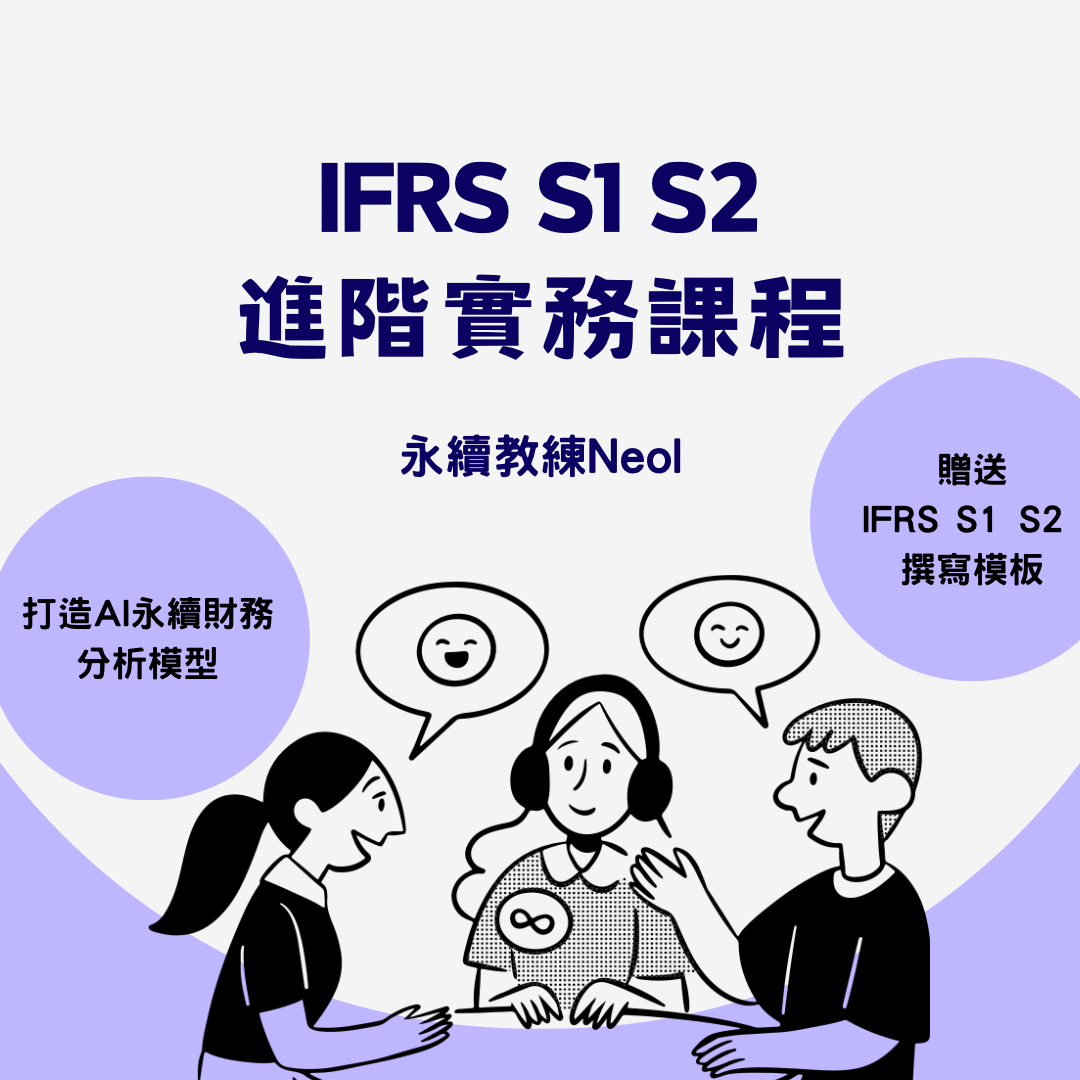 🫡永續教練Neol透過系統化的教材編排方式,以及口語化的授課風格,帶領您一步步理解永續揭露準則 IFRS S1 S2 的條文內涵,並進一步能夠靈活運用在實際工作上。