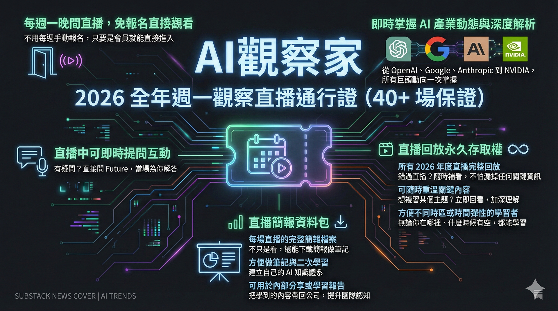 AI觀察家2026 趨勢直播通行證|每場 75 元