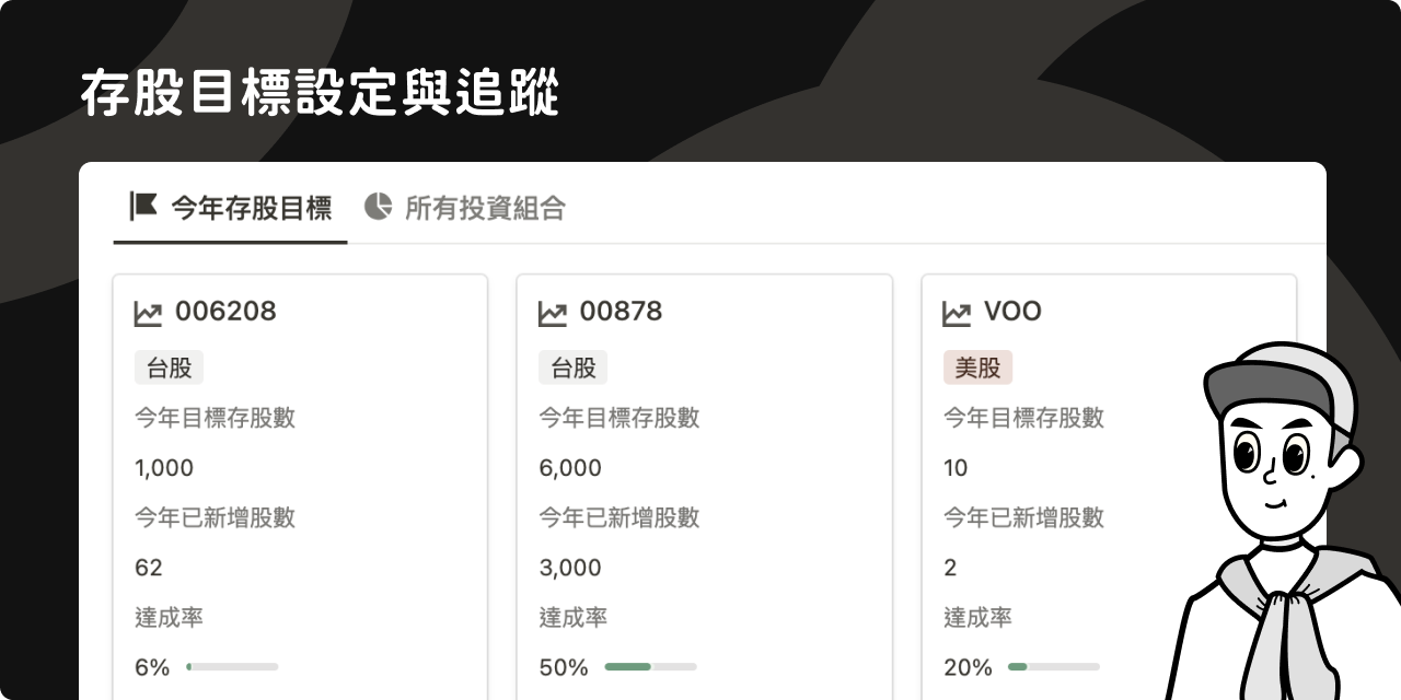 透過「視覺化」的方式掌握存股進度,不僅清晰了解目標的達成狀況,看著股數逐漸變多也能獲得成就感,進而提高存股動力,持續往財務目標邁進
