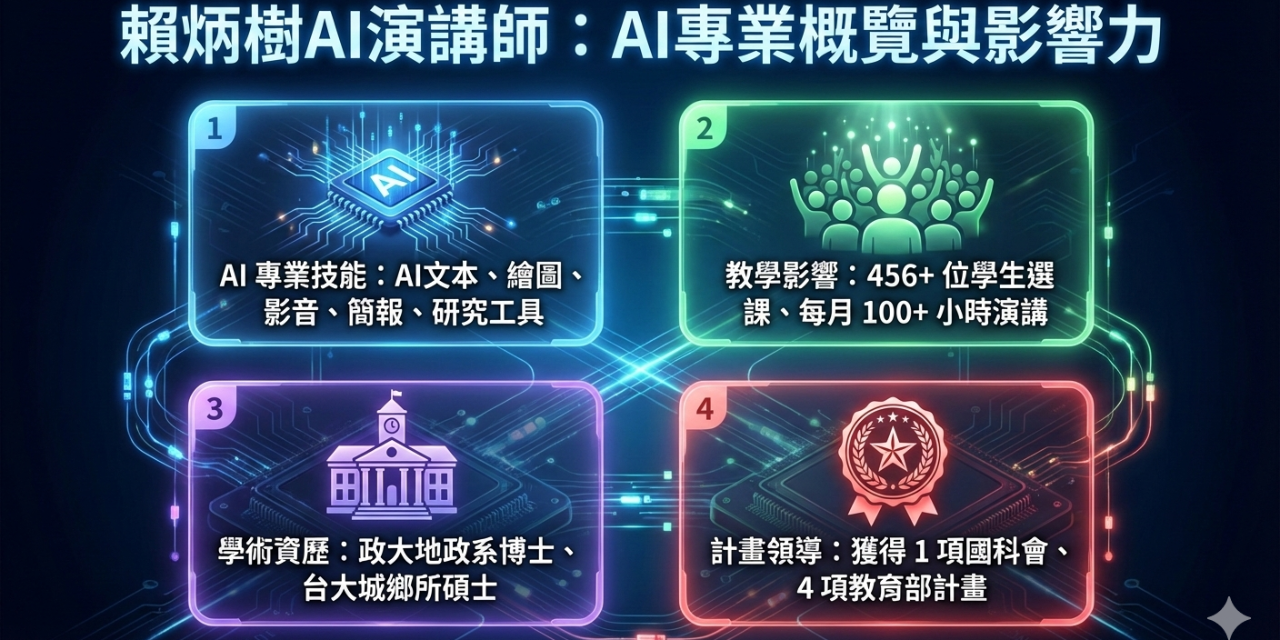 賴炳樹老師簡介與AI課程已滿不行的時間 https://reurl.cc/MMnZ14 歡迎約賴炳樹老師演講時間請加Line: https://line.me/R/ti/p/~laibingshu 賴炳樹老師線上AI課程商品 https://portaly.cc/laibingsu 賴炳樹老師AI工具社群 https://reurl.cc/aZ9QW9 歡迎報名免費自媒體短影音行銷課程 https://r.tiktok01.com/s/WNZdhr 賴炳樹老師網站 https://laitree.blogspot.com