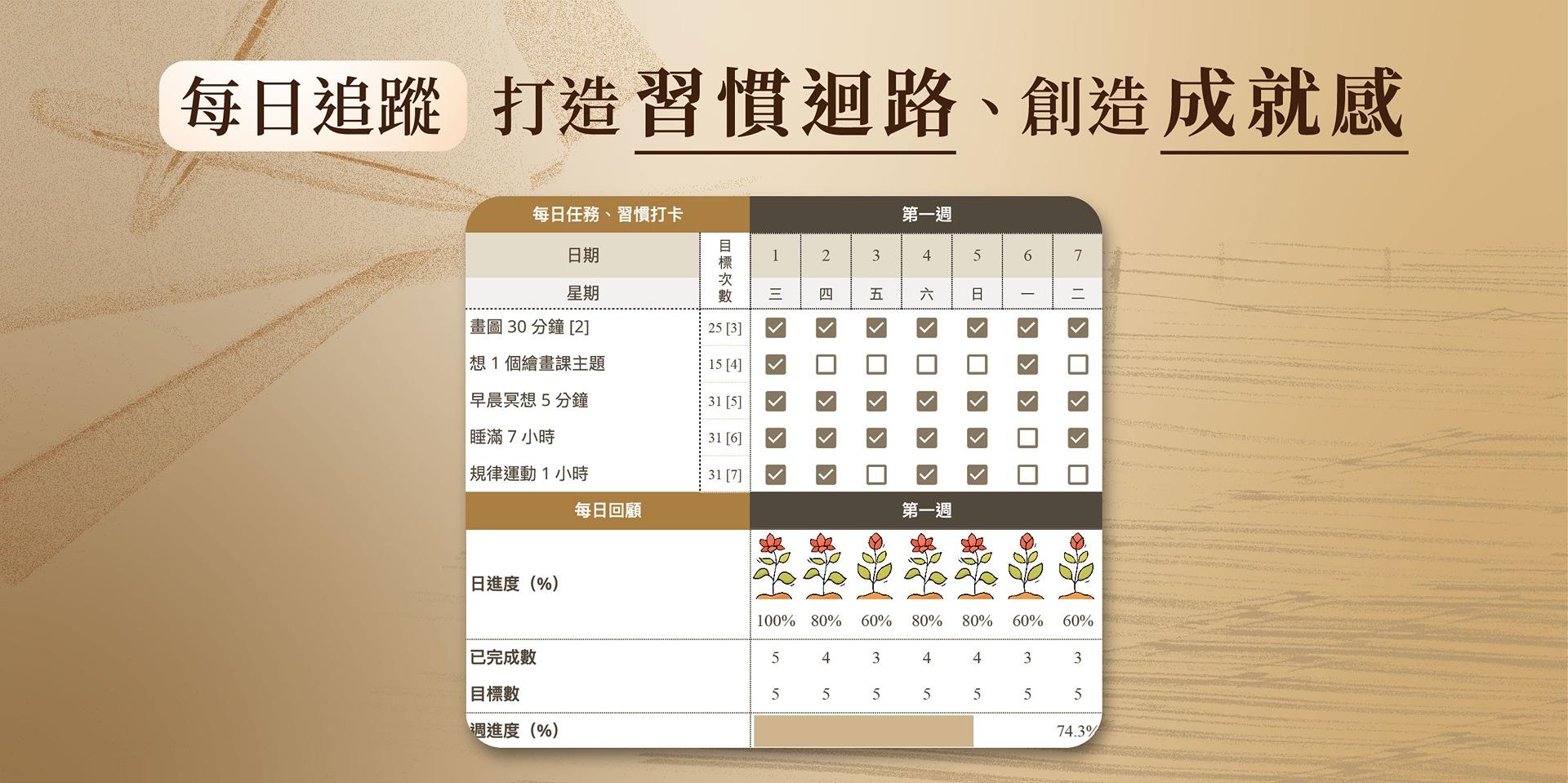 我們將你遙遠的夢想,拆解成一個溫暖而強大的PDCA循環(計畫→執行→查核→行動),讓你從此告別半途而廢,感受每天踏實前進的自己。