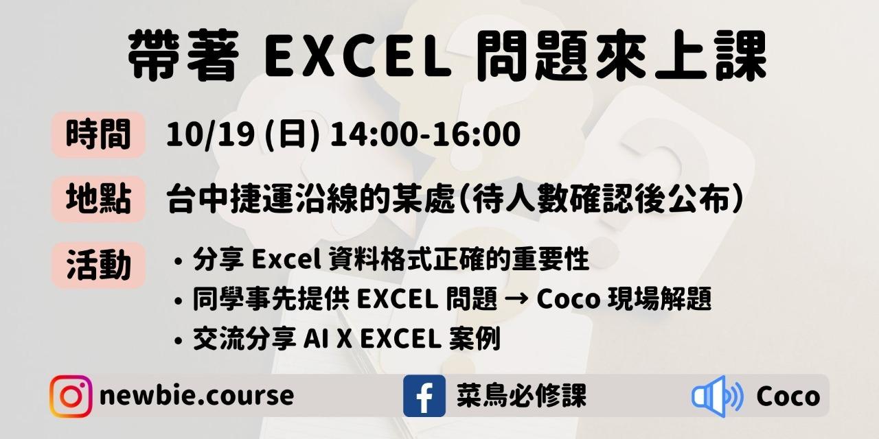 我是 Coco!熱愛 Excel 的文組生 🥸 💡 曾任華航空品處、青年職涯發展中心等 公私立部門 Excel 內訓講師 💡 總學員逾千人 🥸 歡迎大家跟我交流 Excel 💓