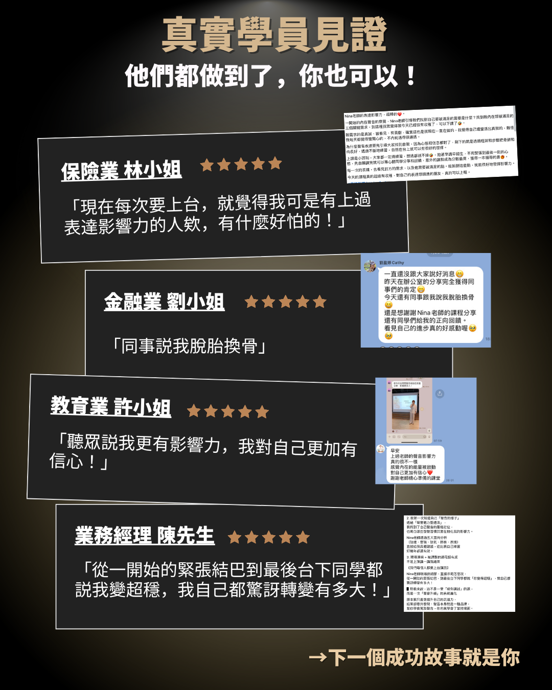 - 害怕上台、在意他人眼光、卻渴望表達與影響力的專業人士