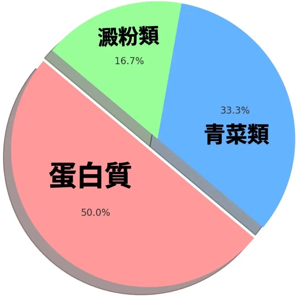 每餐比例:蛋白質3/蔬菜2/澱粉1