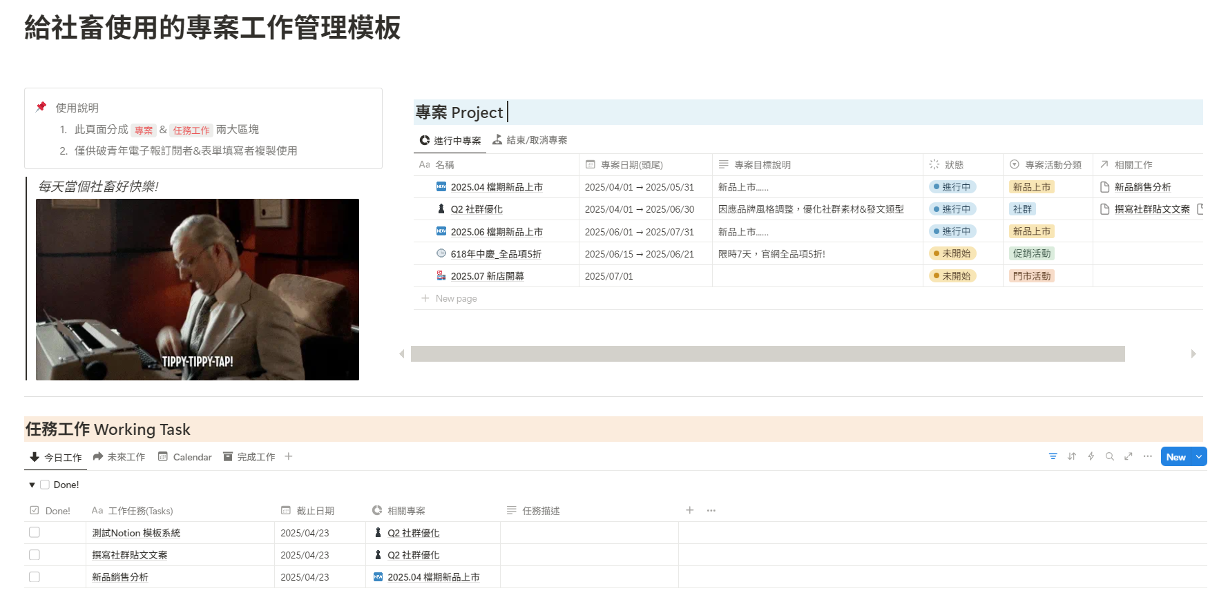 所以我設計了一套給社畜都能快速上手的「Notion 專案工作系統」,希望能幫你用最簡單的方式,建立屬於自己的任務控制中心。