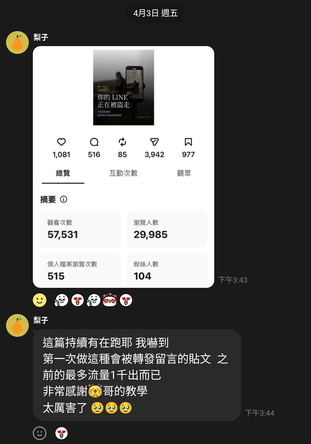 - 「貼文從1000-3000,近期突破三萬」