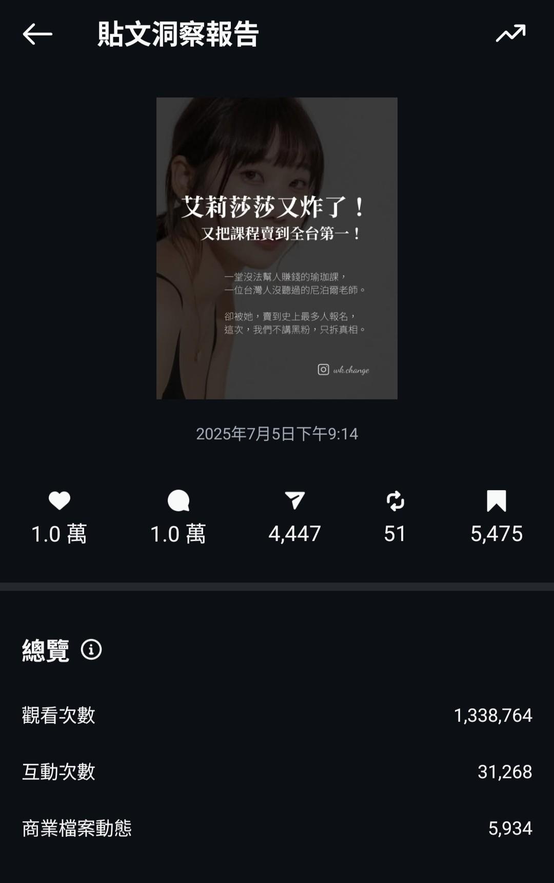 - 寫出百萬流量貼文(觀看次數1,338,764)